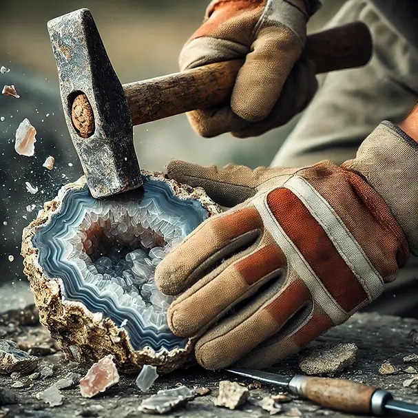• Rock Hammer and Chisel: These are essential for splitting open geodes once you’ve found them.