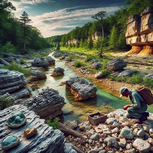 What to Look For: Geodes in creek beds and riverbanks, often filled with quartz or calcite crystals.