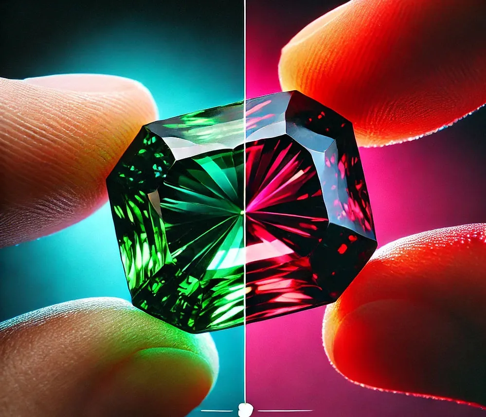 Alexandrite: Famous for its color-changing properties, alexandrite shifts from green in daylight to red under artificial light.