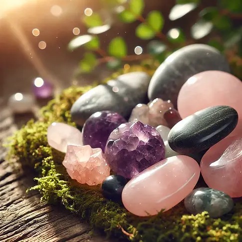 Gemstones: Popular choices include amethyst for calming, rose quartz for love, and black tourmaline for protection (Mindful Cupid).